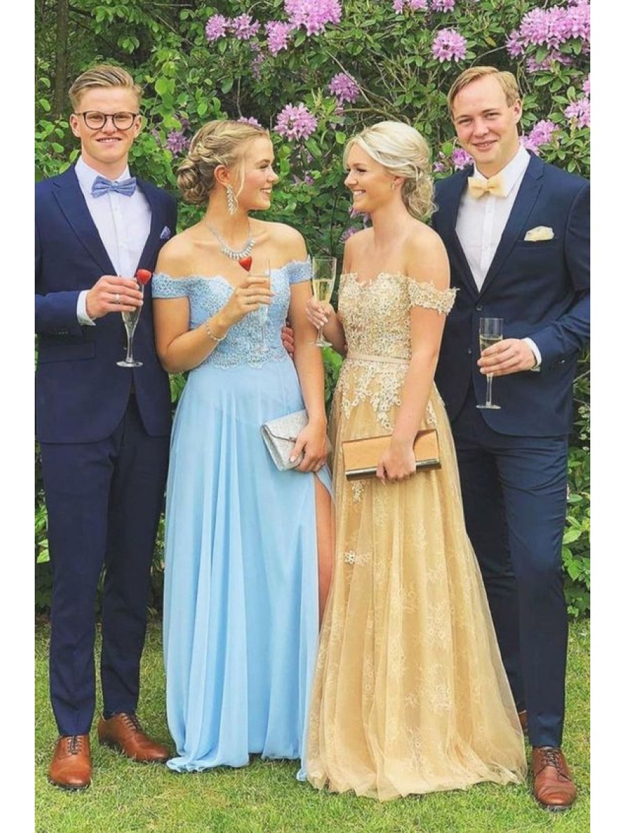 Sale A-Line Long Blue Chiffon and Lace Prom Dress Formal Evening Gowns 901333 zoom
