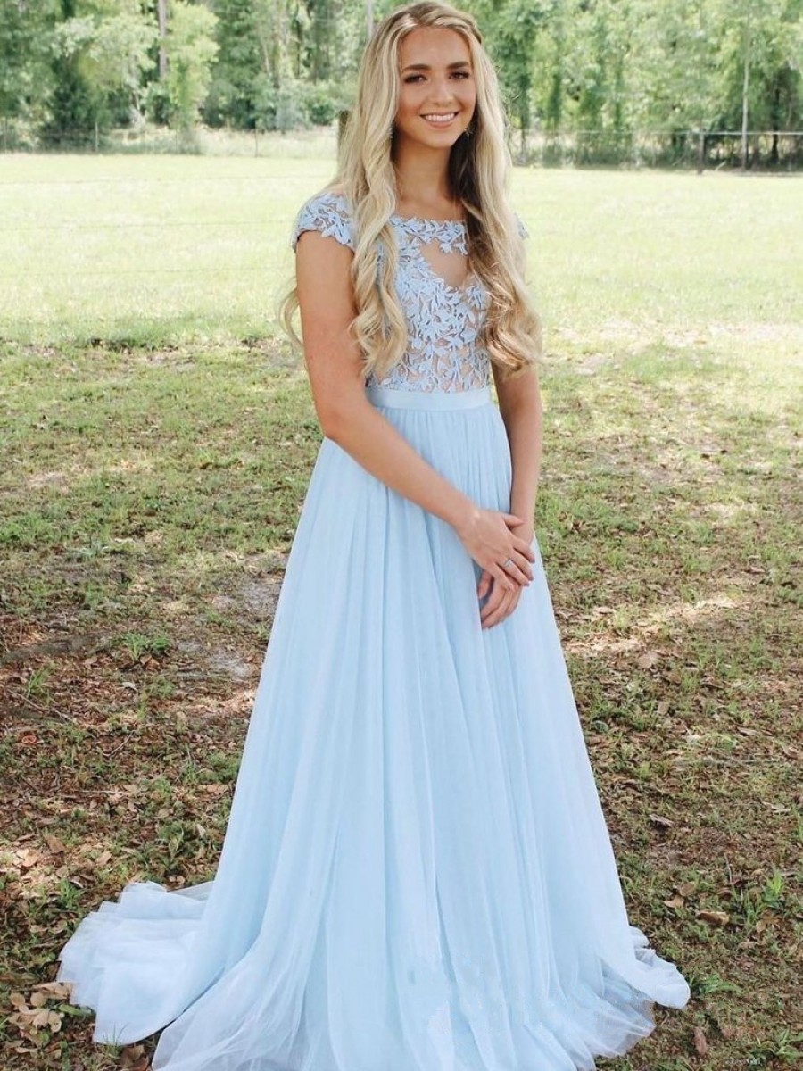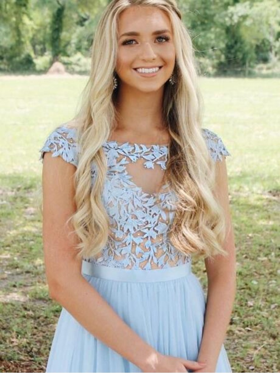Sale A-Line Long Blue Chiffon and Lace Prom Dress Formal Evening Gowns 901362 zoom