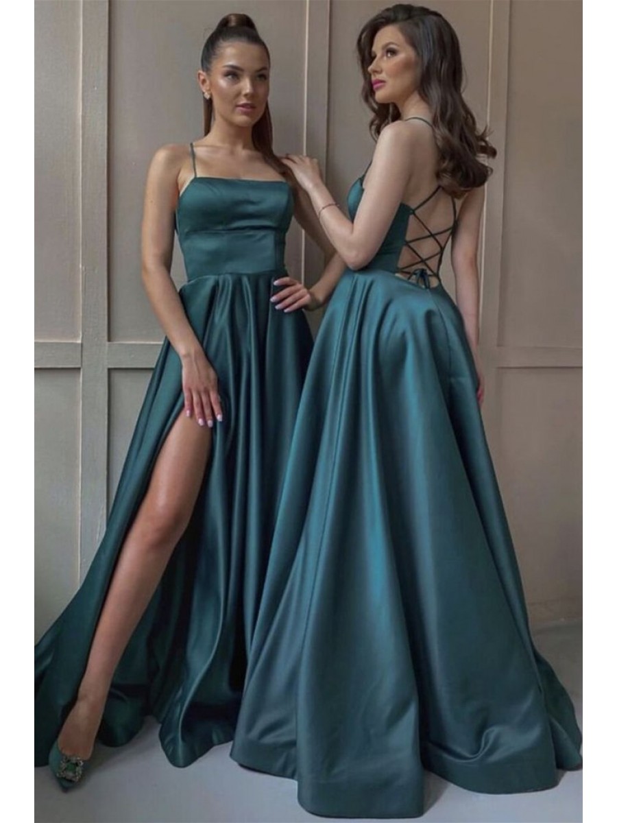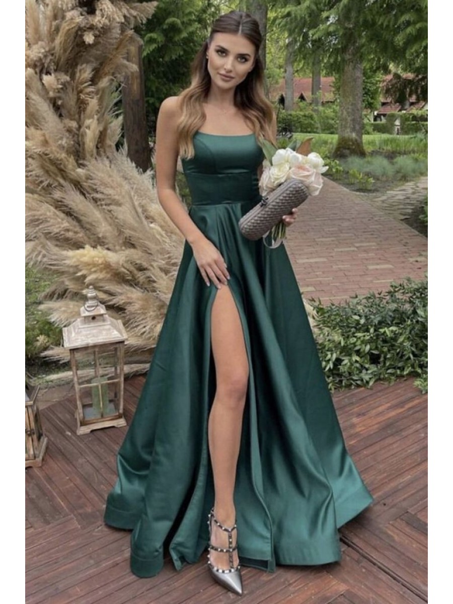 • A-Line Long Dark Green Prom Dress Formal Evening Gowns 901215