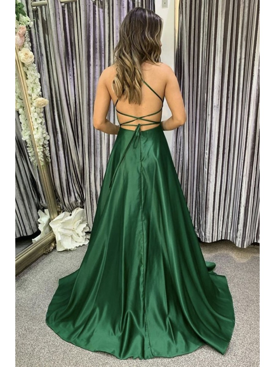 • A-Line Long Green Prom Dress Formal Evening Gowns 901189