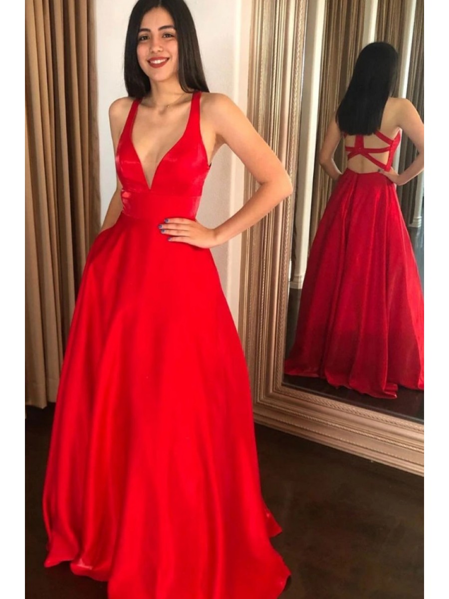 Sale A-Line Long Red V Neck Prom Dress Formal Evening Gowns 901353 zoom