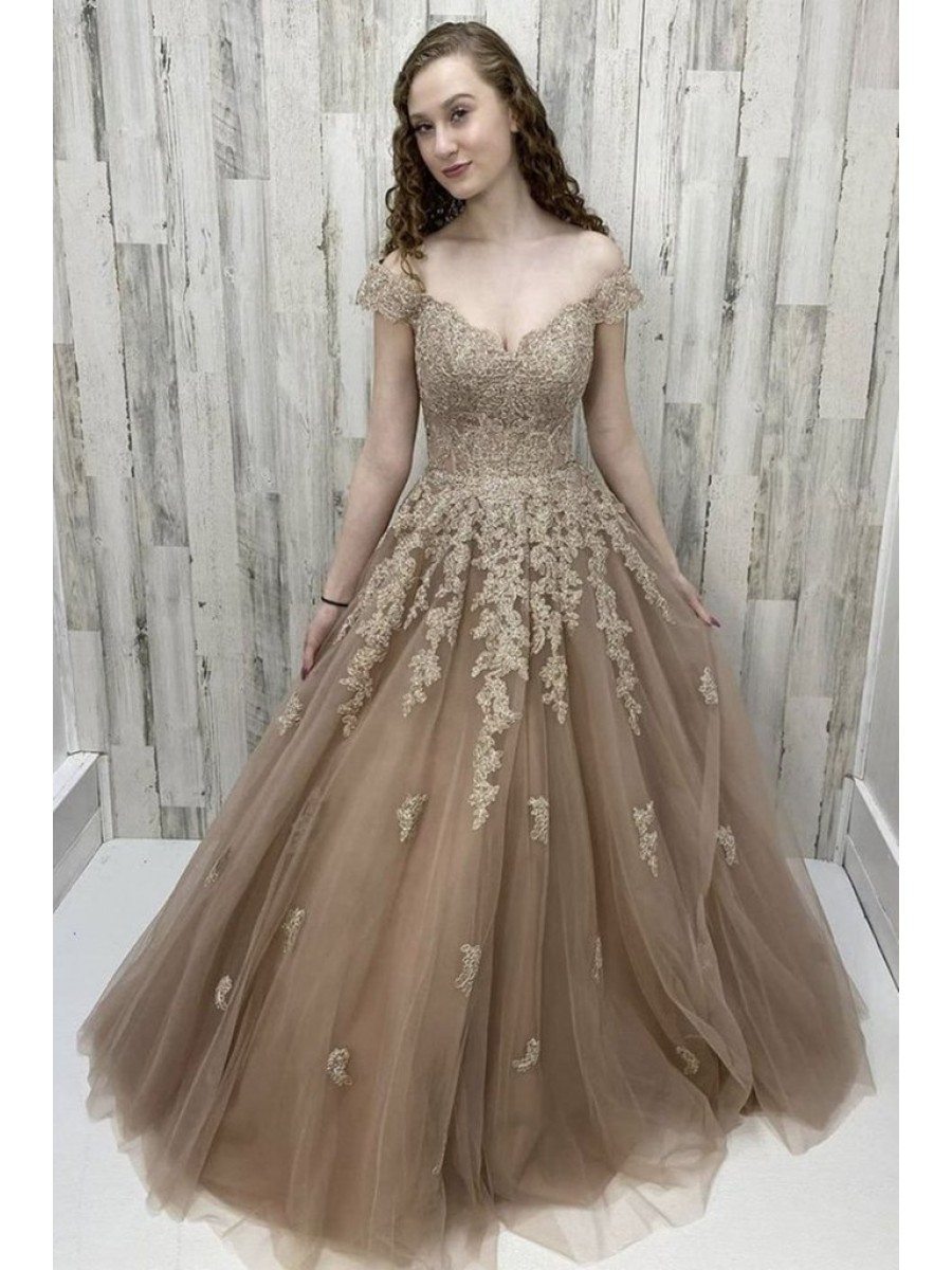 Sale A-Line Off the Shoulder Lace and Tulle Prom Dress Formal Evening Gowns 901279 zoom