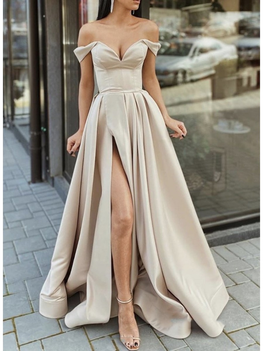 Sale A-Line Off the Shoulder Long Prom Dresses Formal Evening Gowns 901116 zoom