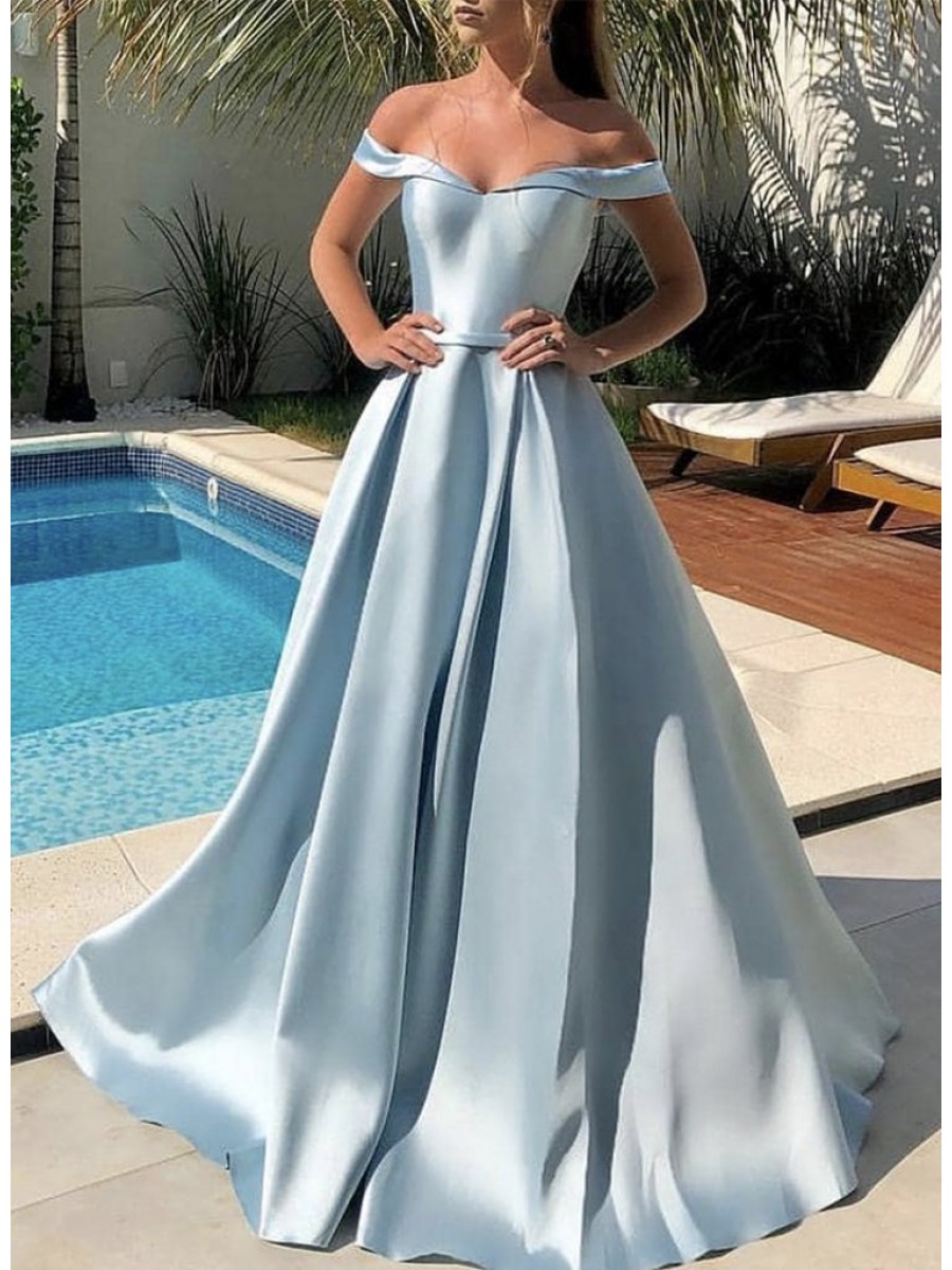 Sale A-Line Off the Shoulder Satin Long Prom Dresses Formal Evening Gowns 901121 zoom