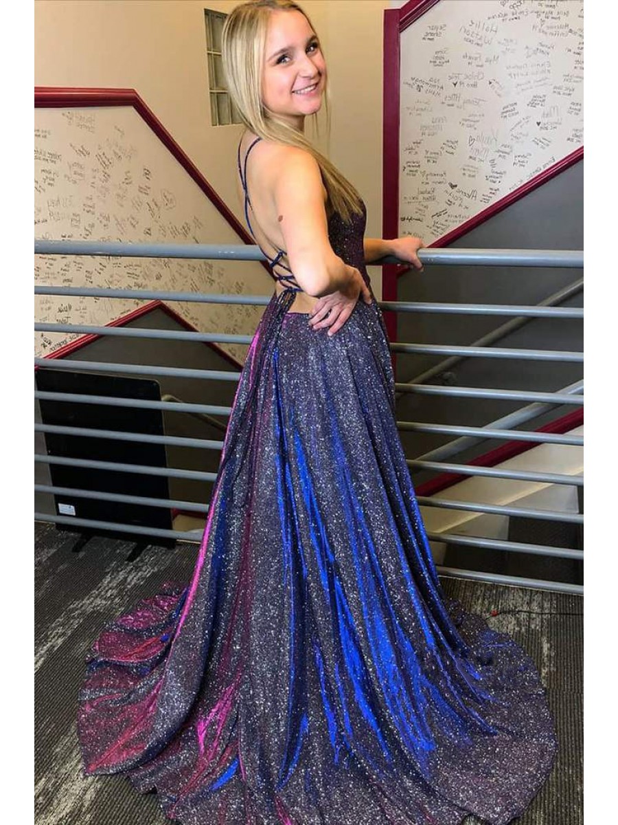 • A-Line Sparkle Long Prom Dress Formal Evening Gowns 901241