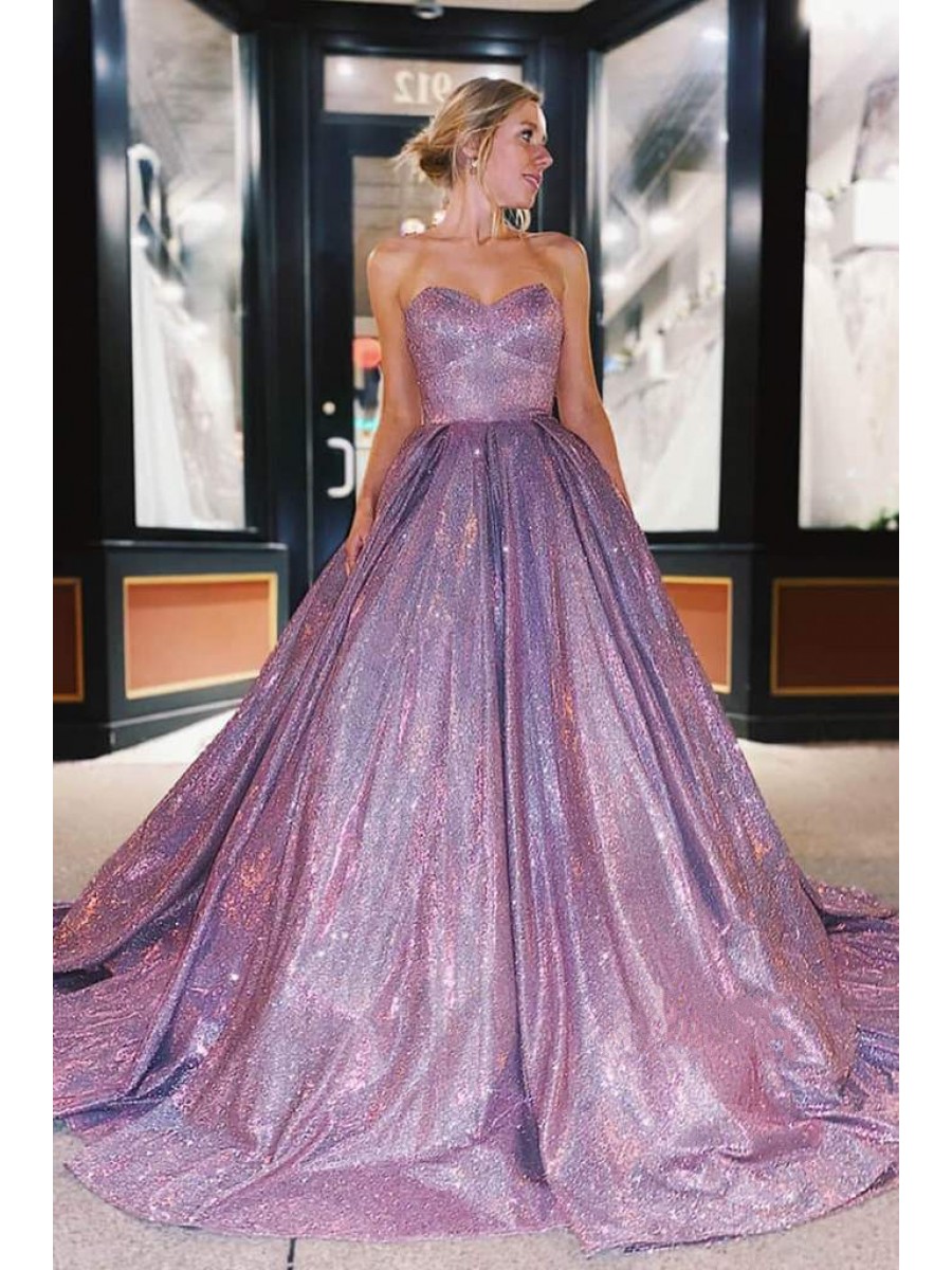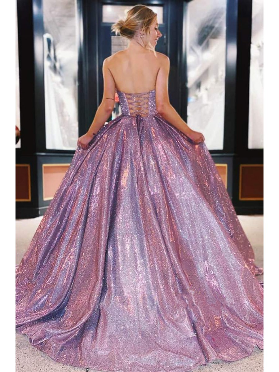 • A-Line Sparkle Long Strapless Prom Dress Formal Evening Gowns 901238