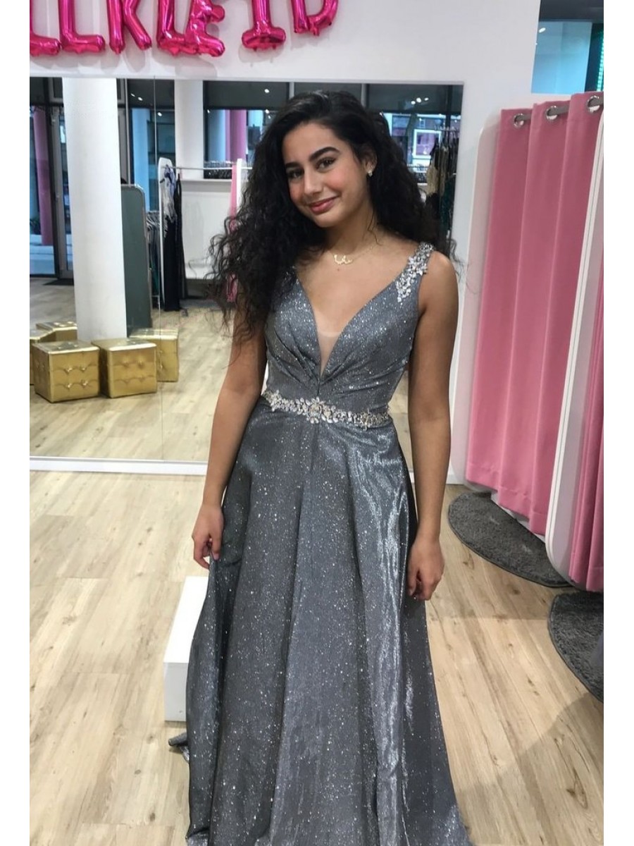 Sale A-Line Sparkle V Neck Beaded Prom Dress Formal Evening Gowns 901246 zoom
