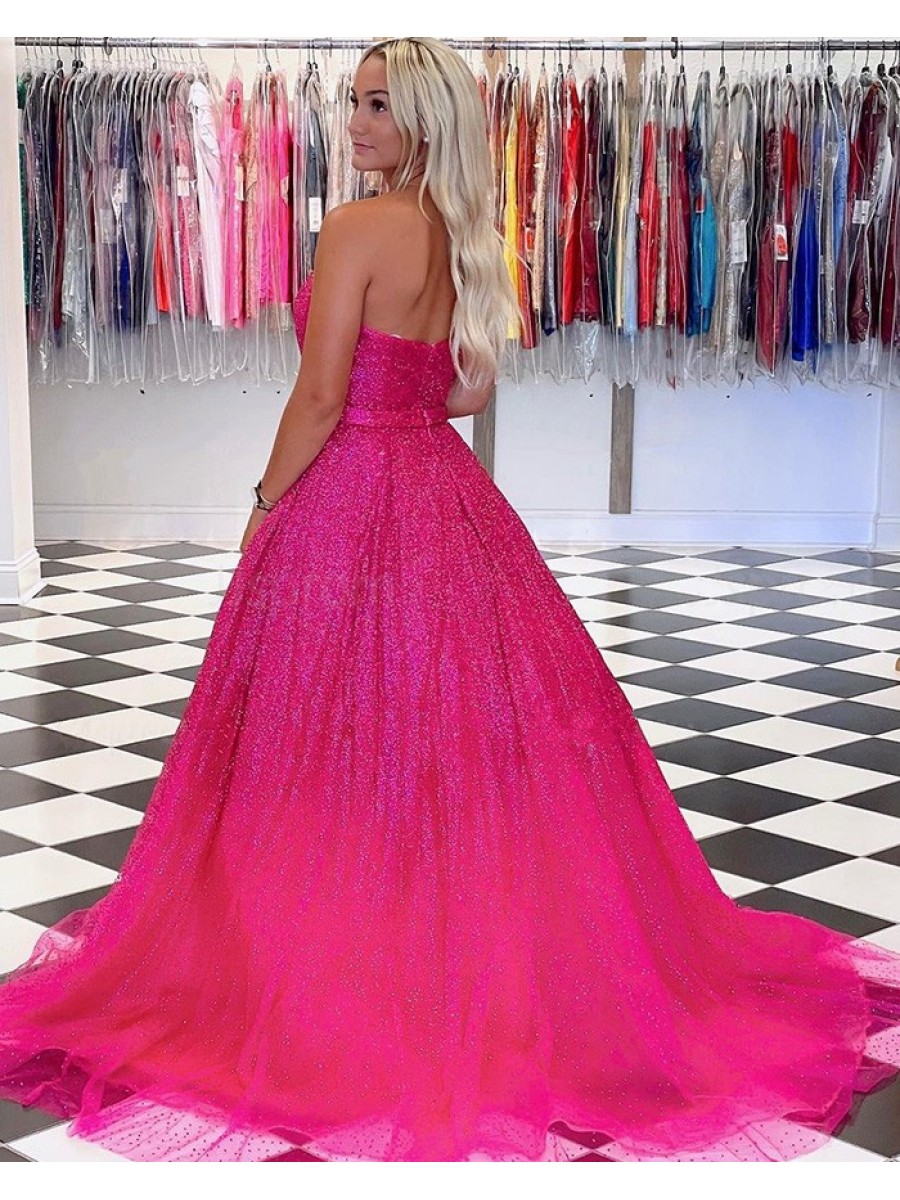• A-Line Strapless Sequin Tulle Long Prom Dress Formal Evening Gowns 901227
