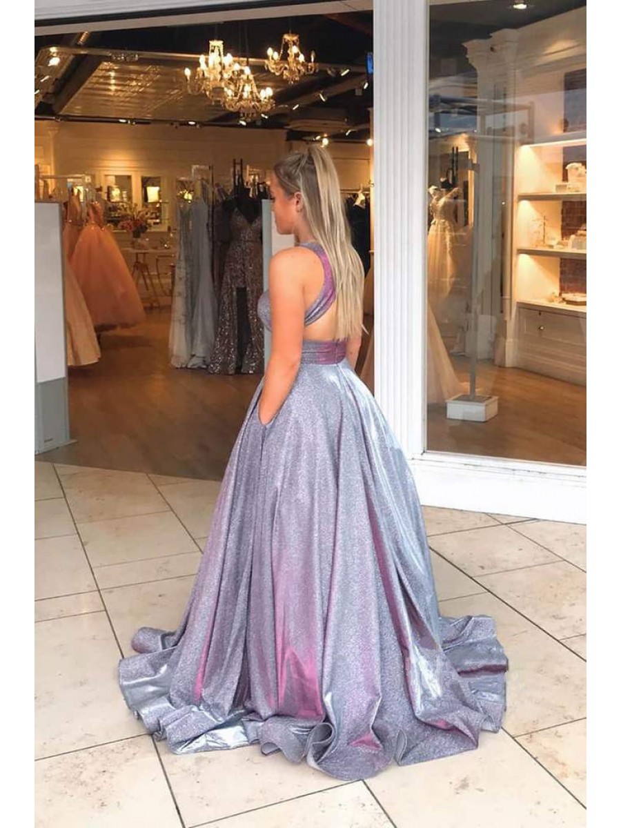 • A-Line V Neck Sparkle Prom Dress Formal Evening Gowns 901240