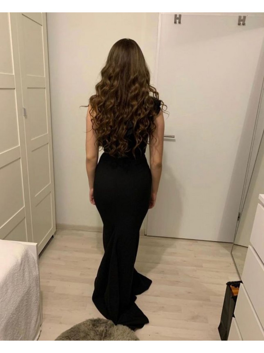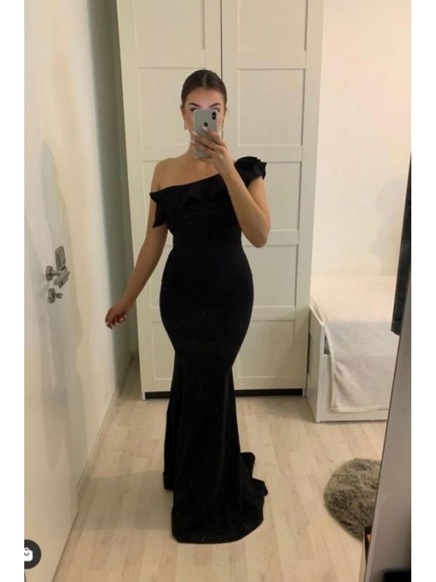• Long Black Mermaid One Shoulder Prom Dress Formal Evening Gowns 901302