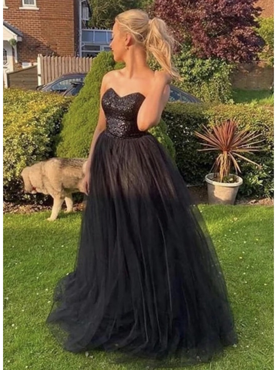 Sale Long Black Sequins and Tulle Prom Dresses Formal Evening Gowns 901106 zoom