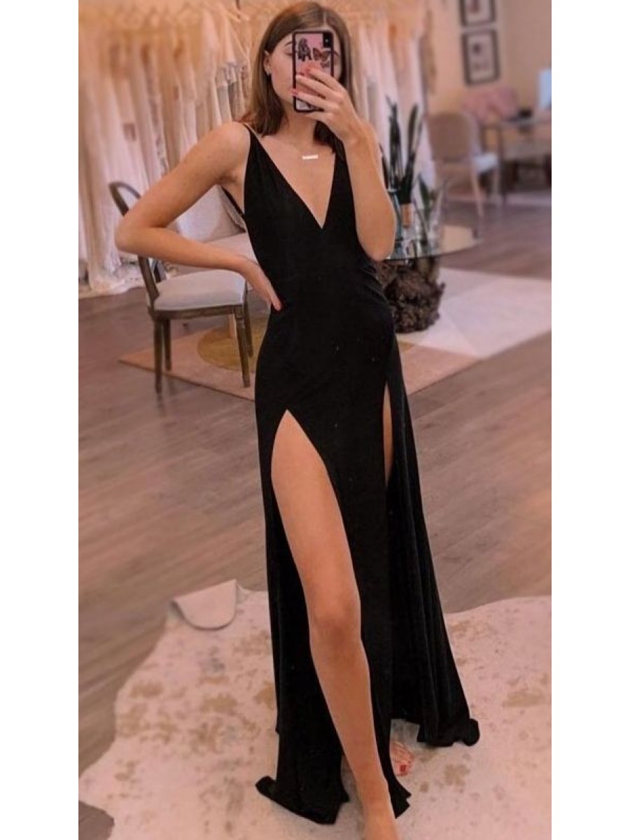 • Long Black V Neck Prom Dress Formal Evening Gowns 901289