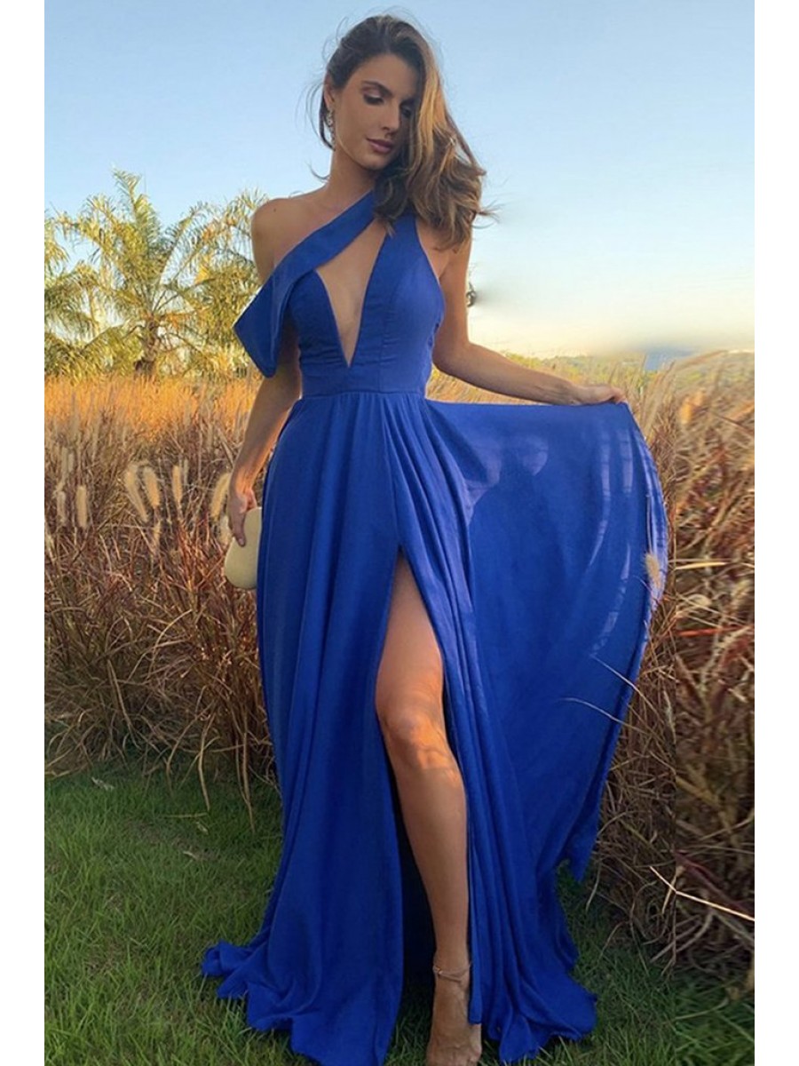 Sale Long Blue One Shoulder Prom Dress Formal Evening Gowns 901149 zoom