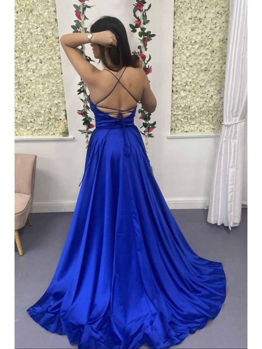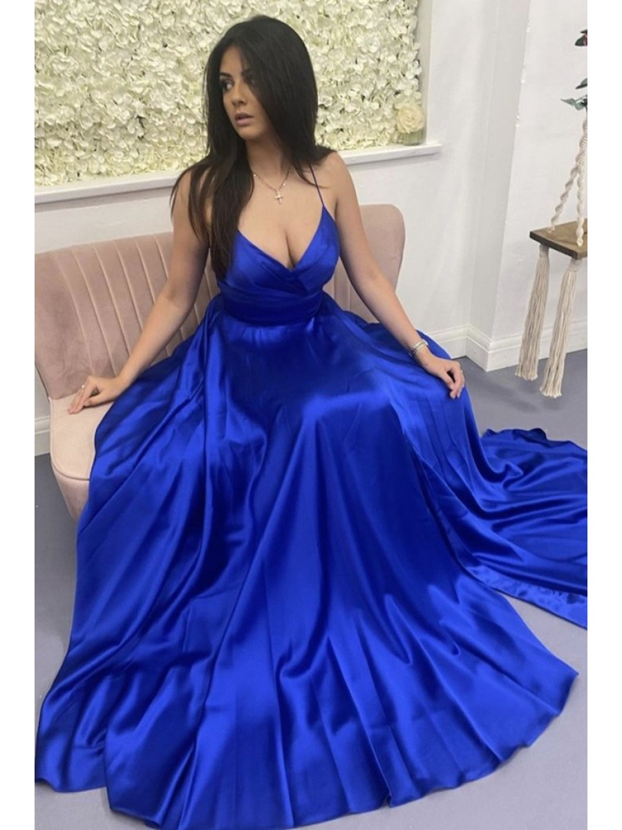 • Long Blue V Neck Prom Dress Formal Evening Gowns 901202