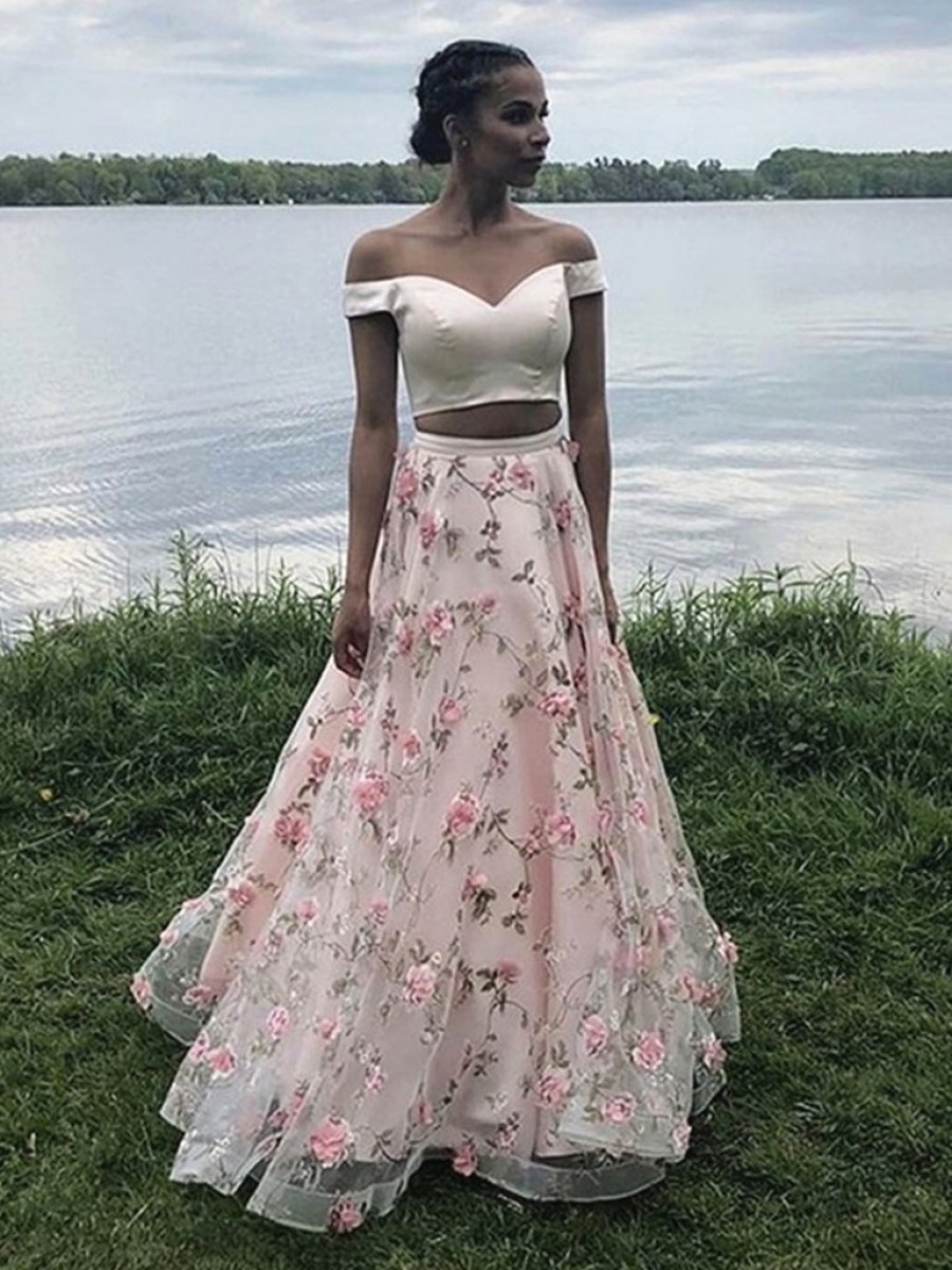 Sale Long Pink Two Pieces Embroidered Prom Dresses Formal Evening Gowns 901051 zoom