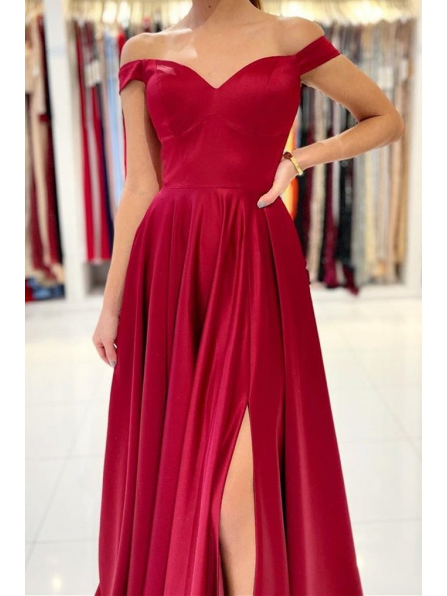 • Long Red Off the Shoulder Prom Dress Formal Evening Gowns 901201