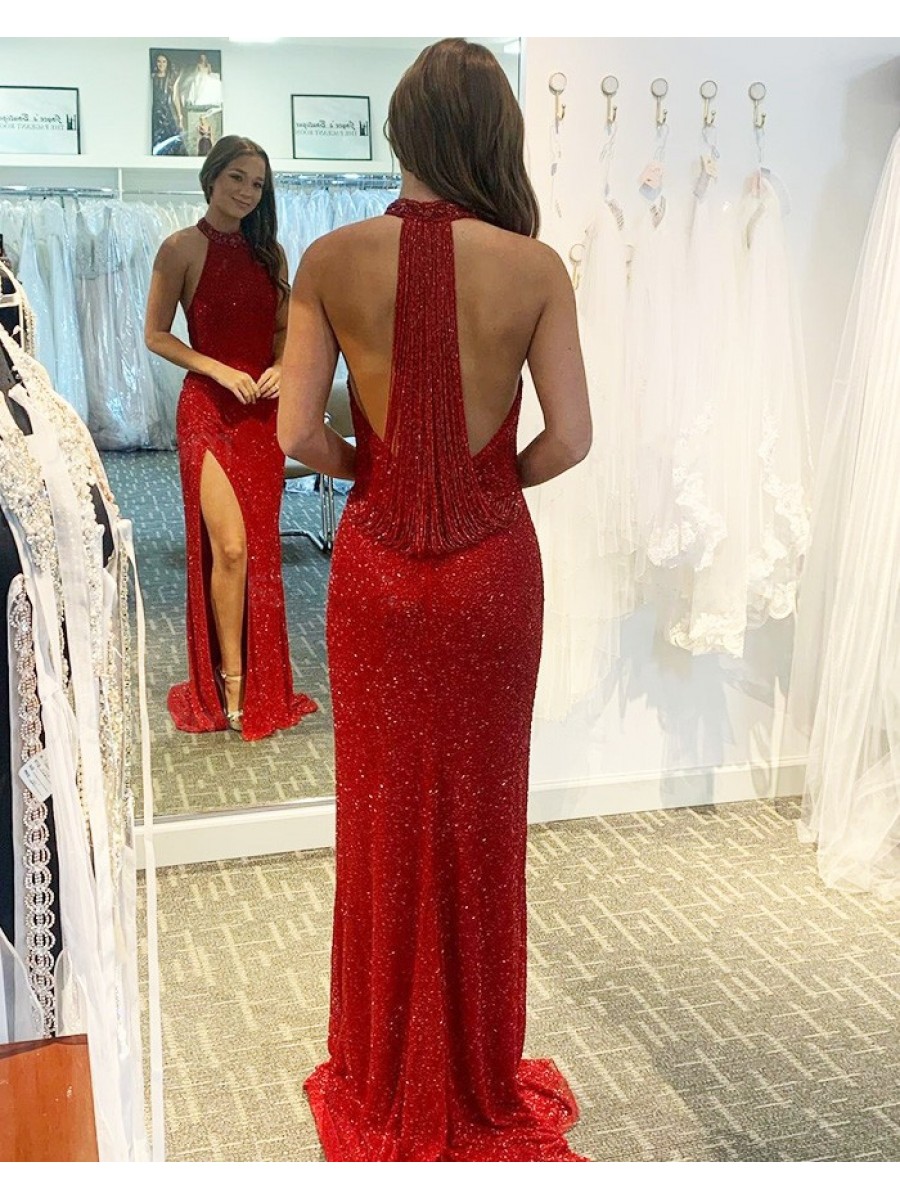 Sale Long Red Sequin Tulle Sparkle Prom Dress Formal Evening Gowns 901257 zoom