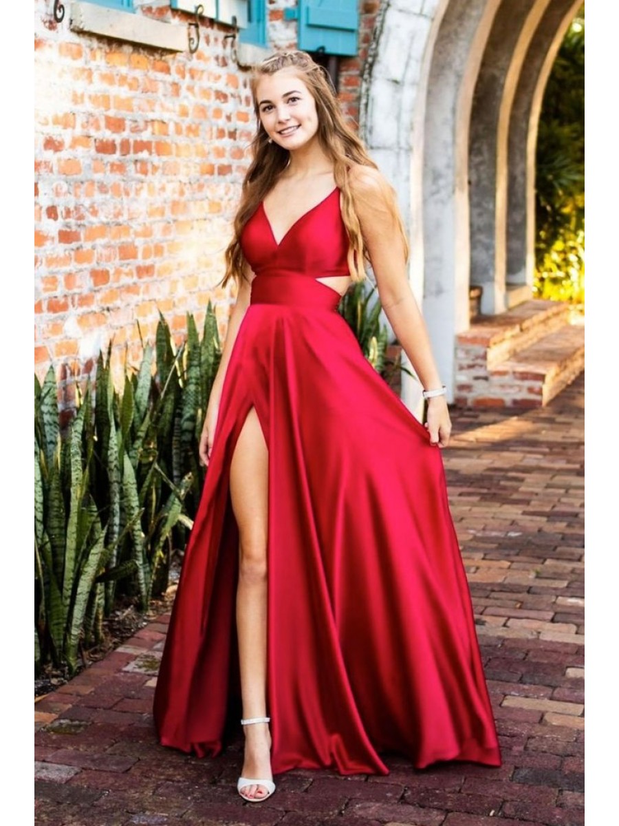 Sale Long Red V Neck Prom Dress Formal Evening Gowns 901148 zoom