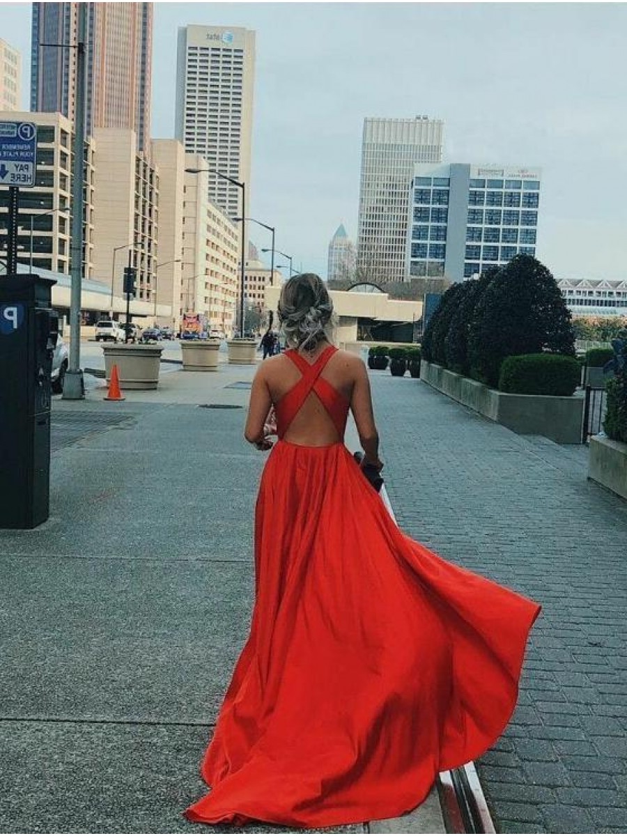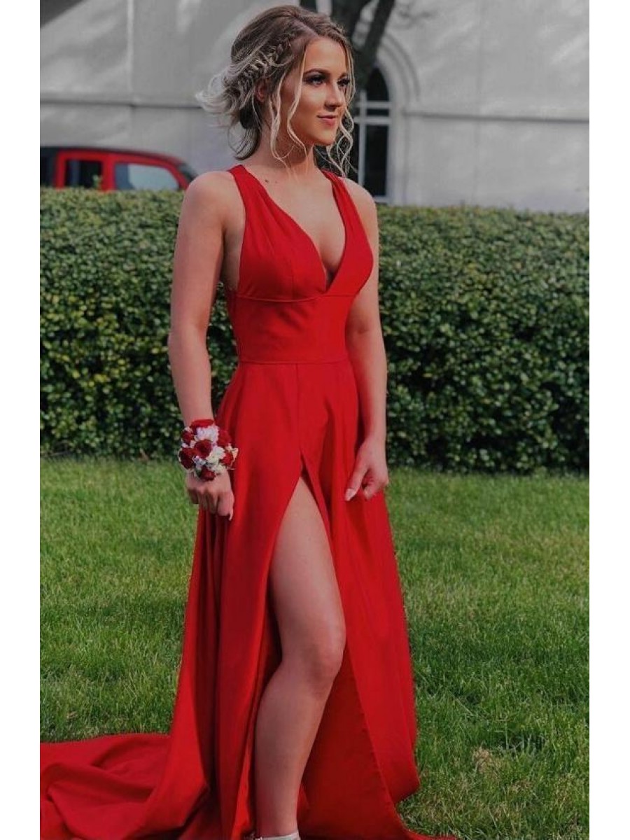 • Long Red V Neck Prom Dress Formal Evening Gowns 901307