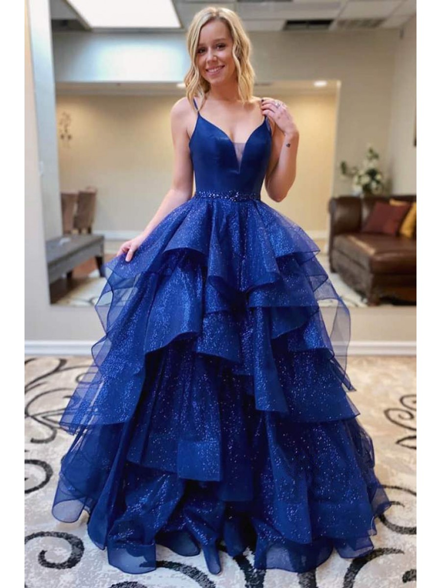 Sale Long Royal Blue Sparkle Tulle Prom Dress Formal Evening Gowns 901337 zoom