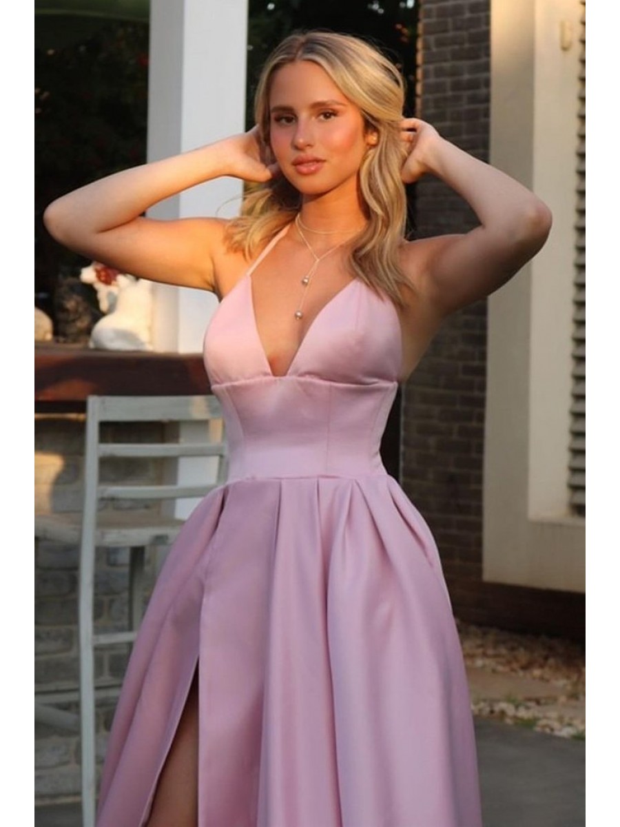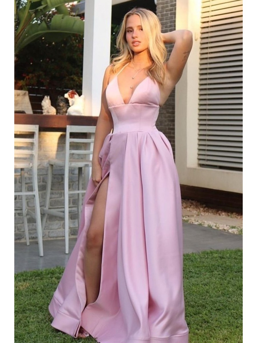 • Long Satin Spaghetti Straps Prom Dress Formal Evening Gowns 901210