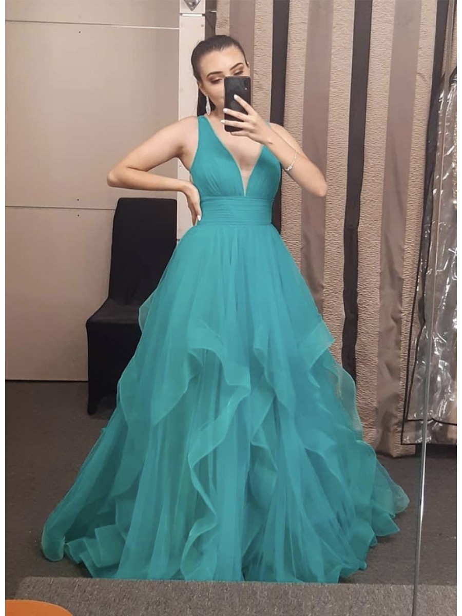 Sale Long Tulle V Neck Prom Dress Formal Evening Gowns 901320 zoom