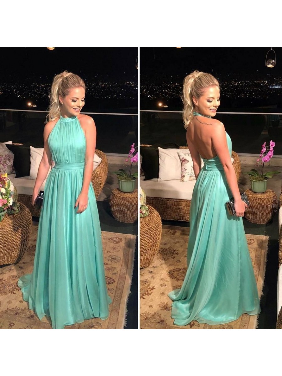 • Simple Long Halter Prom Dresses Formal Evening Gowns 901104
