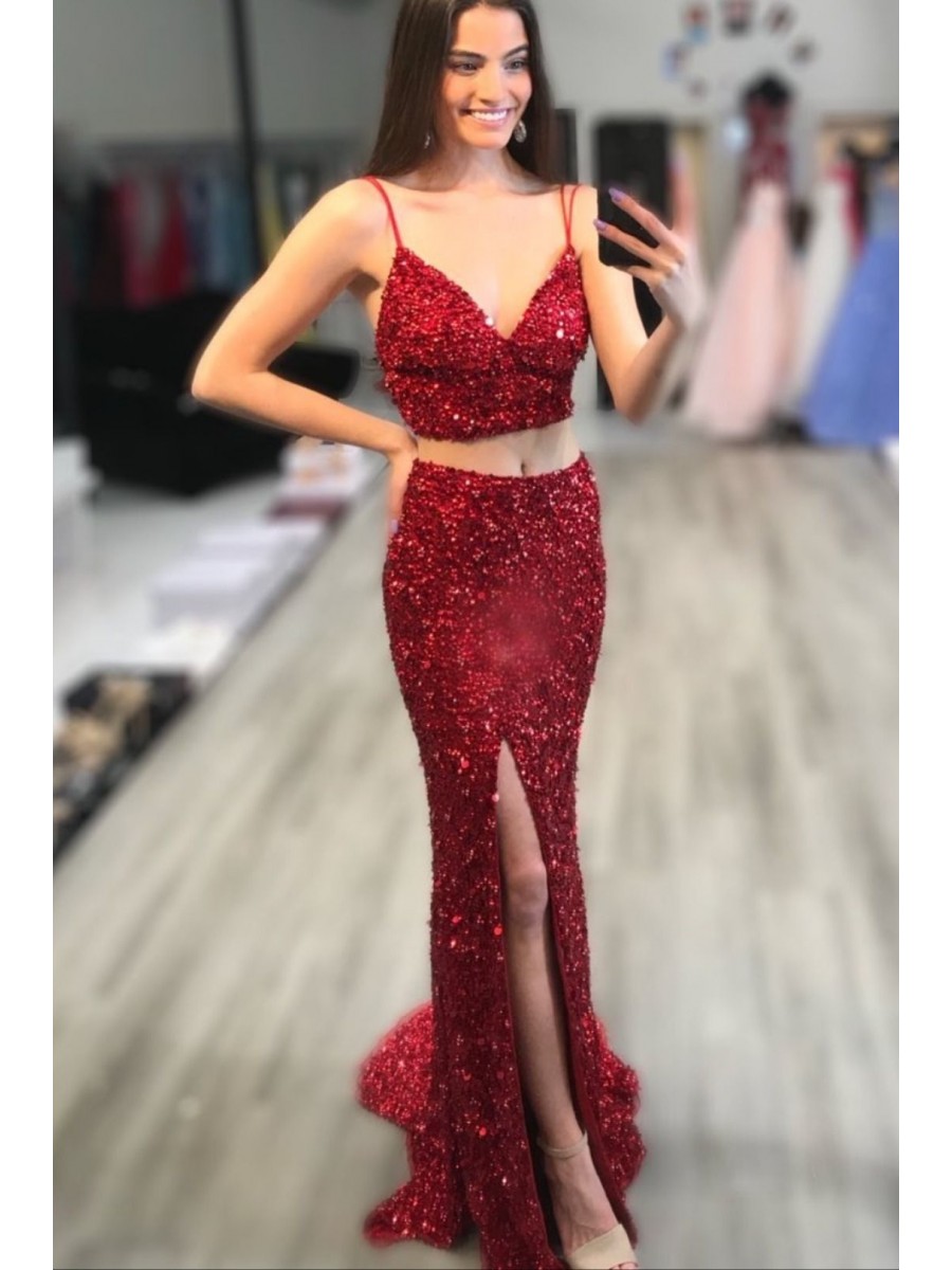 • Two Pieces Sparkle Sequin Prom Dress Formal Evening Gowns 901325