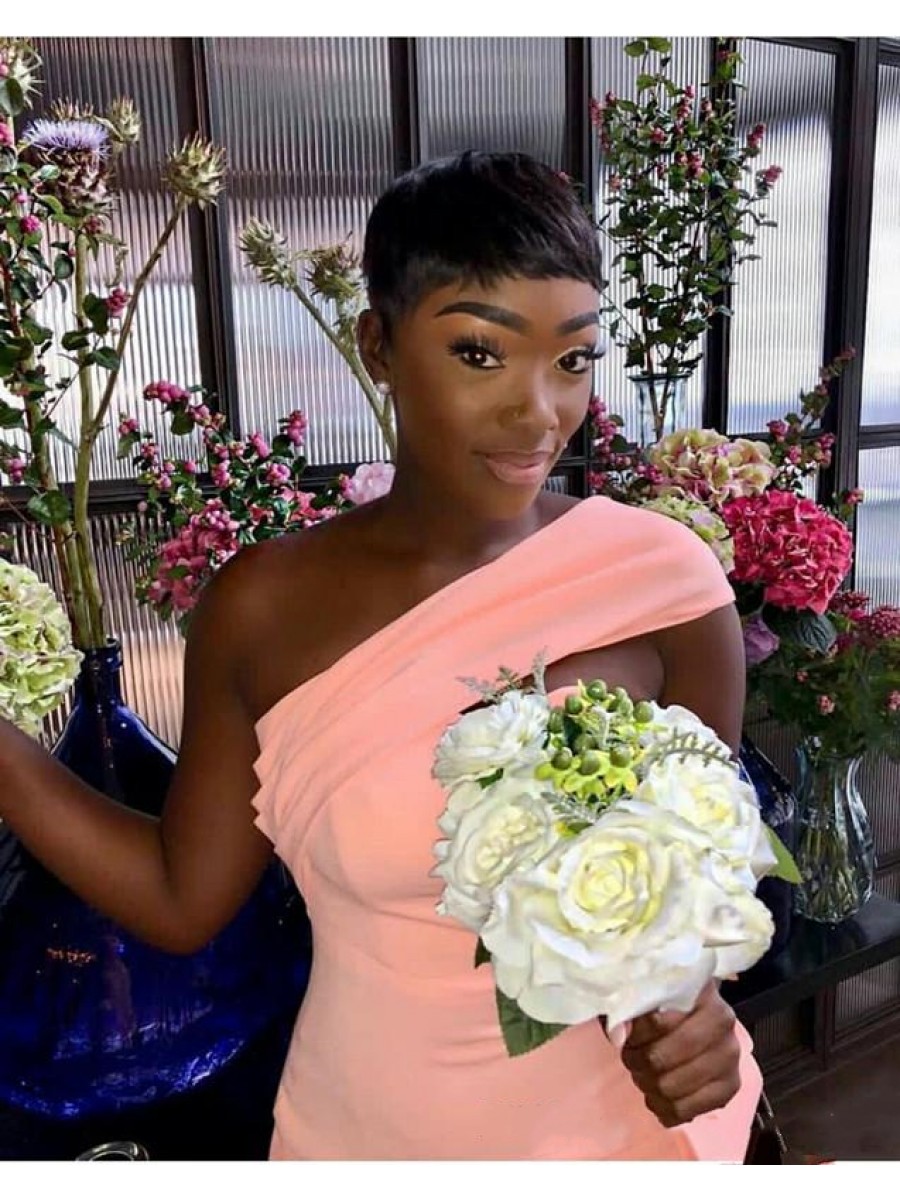 • Long Pink One Shoulder Bridesmaid Dresses 902389